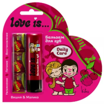 Каждый, кто хоть раз пробовал этот бальзам со вкусом сочной вишни и малины, будет в восторге. Бальзам состоит из натуральных ингредиентов с супер-увлажняющими и питательными компонентами. Бальзам для губ «Love is…» содержит масла ши, кокоса и миндаля, которые интенсивно питают увлажняют кожу губ. Витамин E предотвращает старение кожи и обладает защитными свойствами. В составе также содержатся экстракты ромашки и календулы, которые в сочетании с пантенолом бережно ухаживают за кожей губ и обладают противовоспалительным действием. Отличная гигиеническая помада на холодное время года и при обветривании. Бальзам для губ станет замечательным подарком на любой праздник!